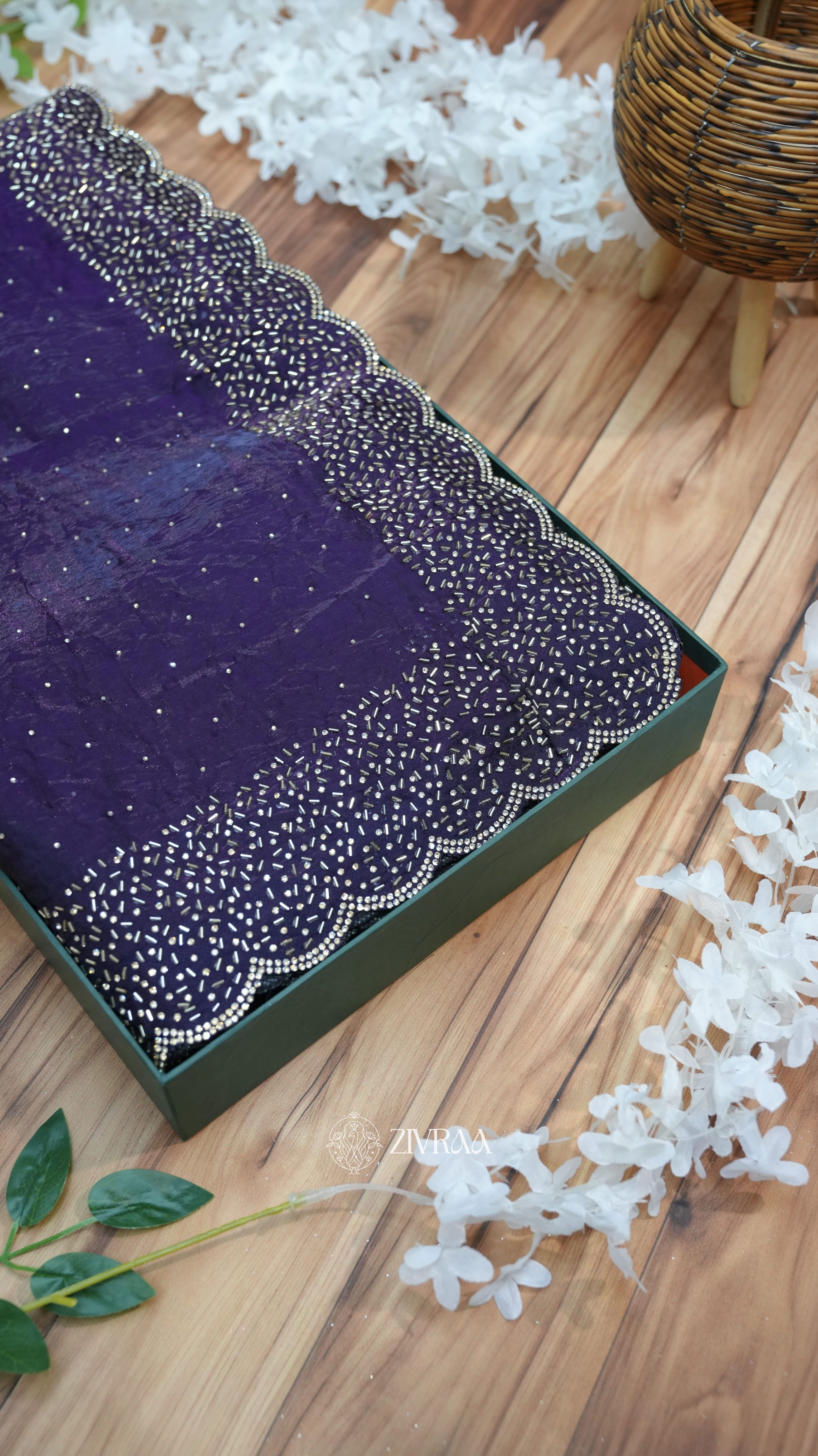 Elegant Red Hand-Embellished Saree with Scalloped Border