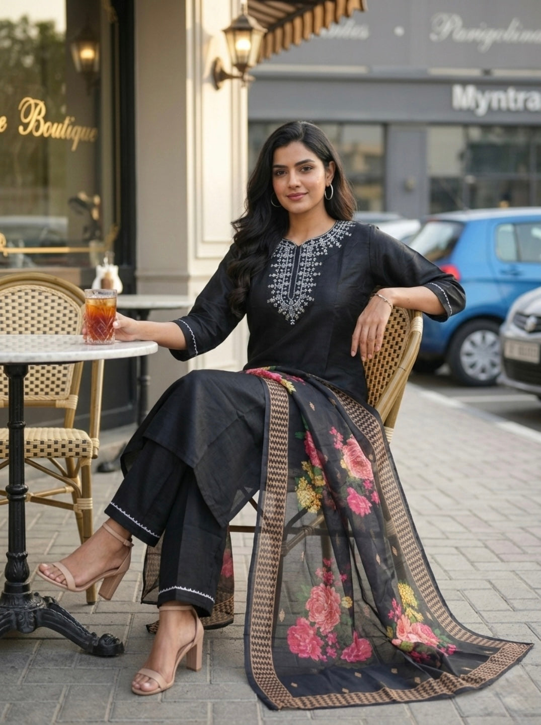Make a bold ethnic statement with this elegant black embroidered kurta set. Designed with a stylish embroidered neckline, this kurta offers a perfect blend of traditional charm and modern elegance.
